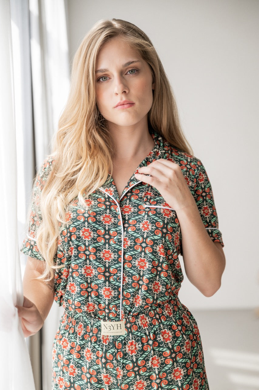 Verleihe deiner Abendroutine neuen Glanz mit unserer Dreamscape-Kollektion, die eine Auswahl luxuriöser Schlaf- und Loungewear aus Bambus umfasst. Entspanne, erhole und geniesse in unserer Loungewear mit passendem Oberteil-und-Hosen-Set. Jedes Teil ist in vier exklusiven Prints dieser Kollektion erhältlich und aus ultraweichen, natürlichen Bambusfasern gefertigt, die im Sommer angenehm kühlen und im Winter wohlig wärmen. Entdecke die perfekte Verbindung von Komfort und Eleganz mit Dreamscape.